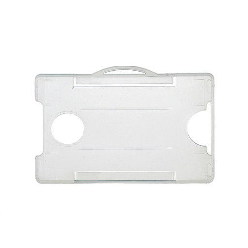 Opaque, Rigid PVC cardholder with dallas tag button recess. Holds a single card in a landscape view with an open face.
